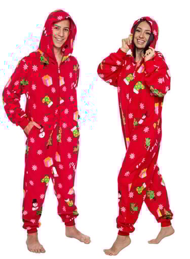 A collection of holiday fun and comfortable onesies and ugly sweater designs and ideas for the holidays.