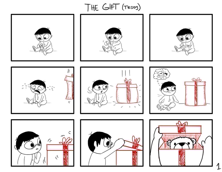 "The Gift" is a story concept about a boy getting a present with an unexpected twist.